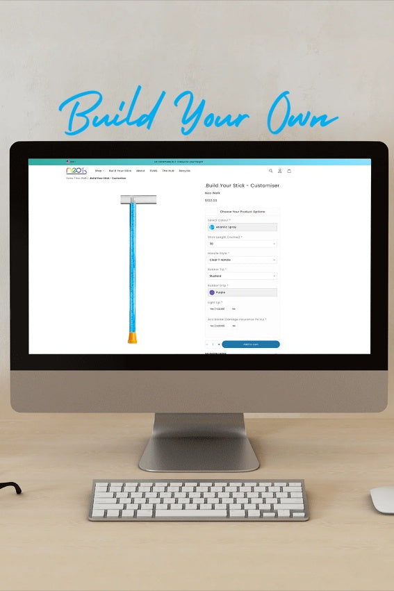 Here at Neo Walk, we know you love to stand out from the crowd! That’s why we’re so excited to introduce Build Your Stick—your chance to customize your walking stick in real time. Have fun mixing and matching different handle styles and ferrule colors to create your perfect look. Whether you want a bold, eye-catching design that reflects your personality or a sleek, classic style that goes with everything, Build Your Stick lets you make it your own!